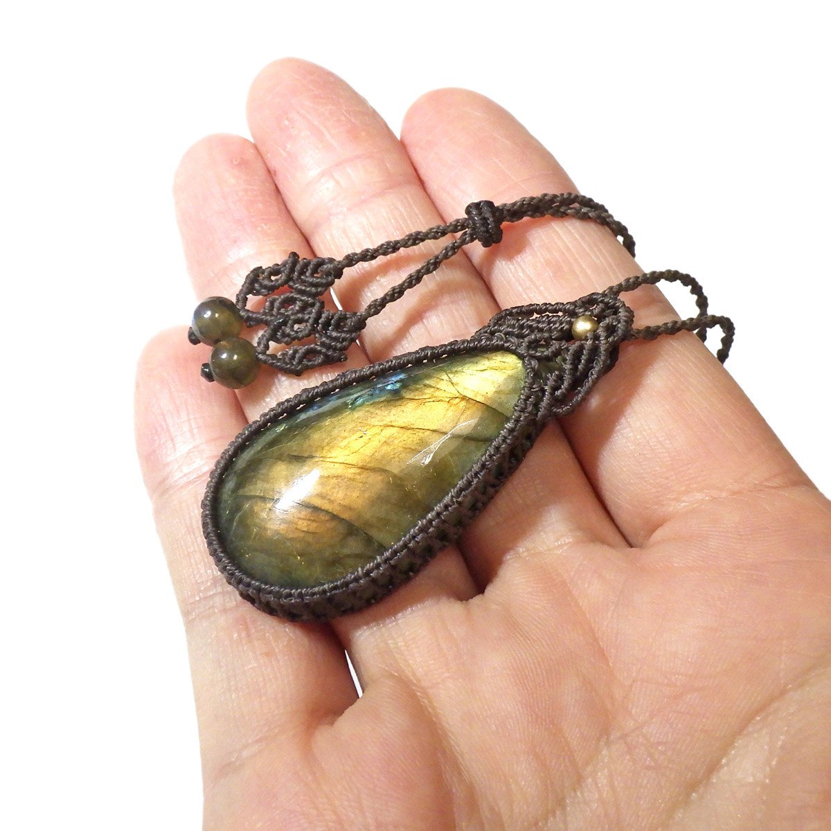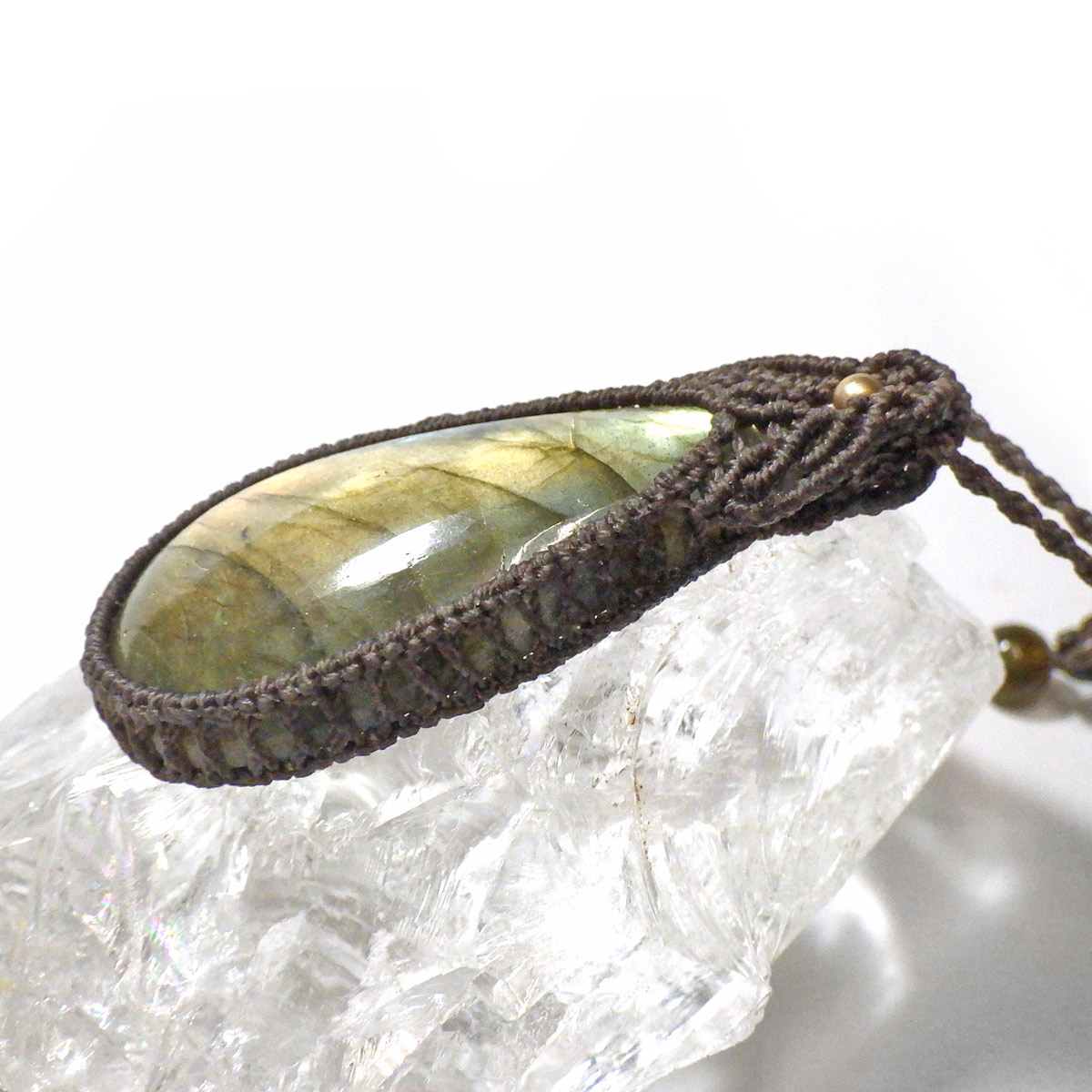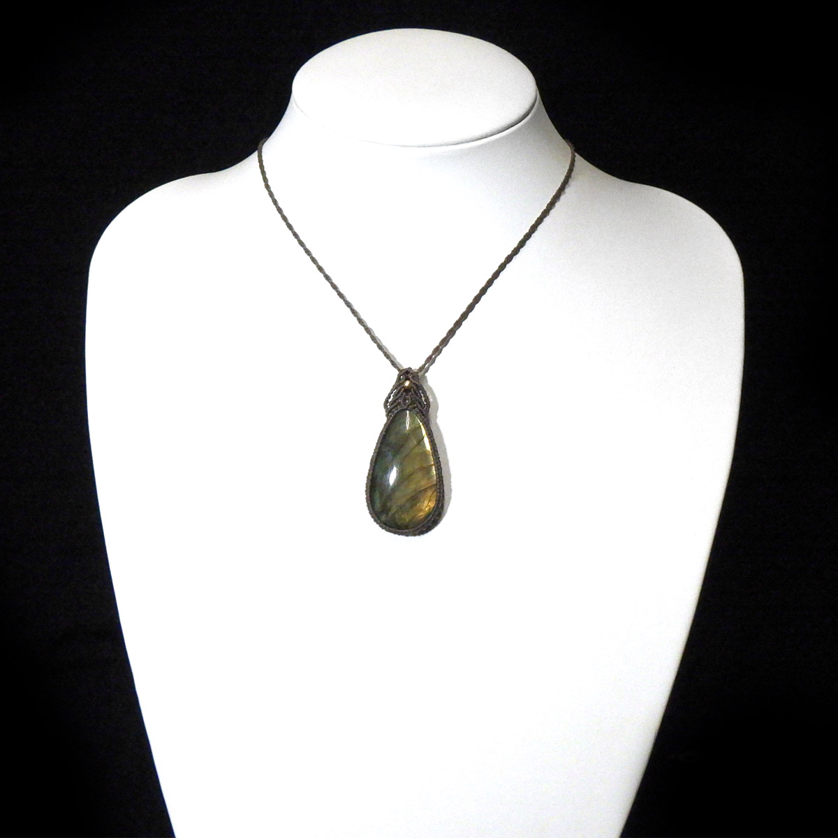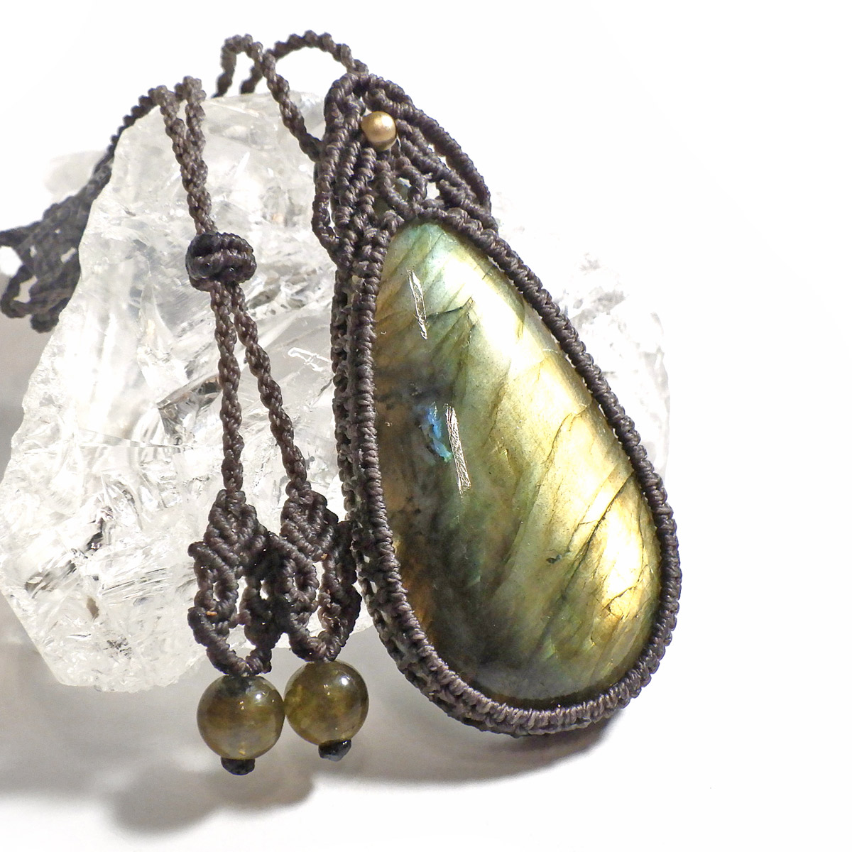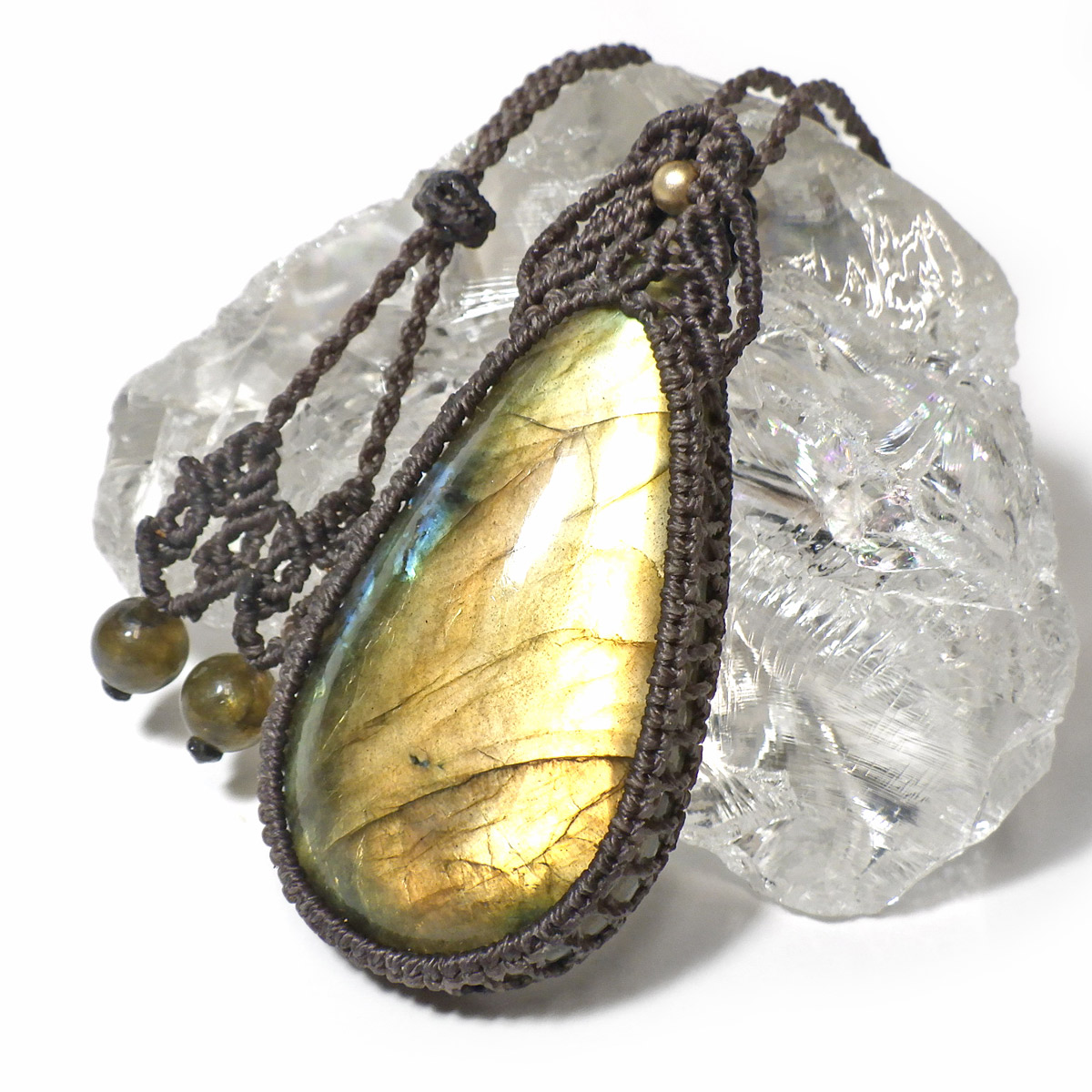 マダガスカル産のラブラドライトを使用したマクラメペンダントです。