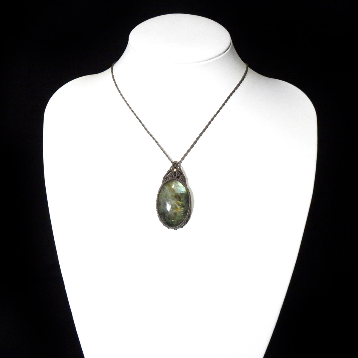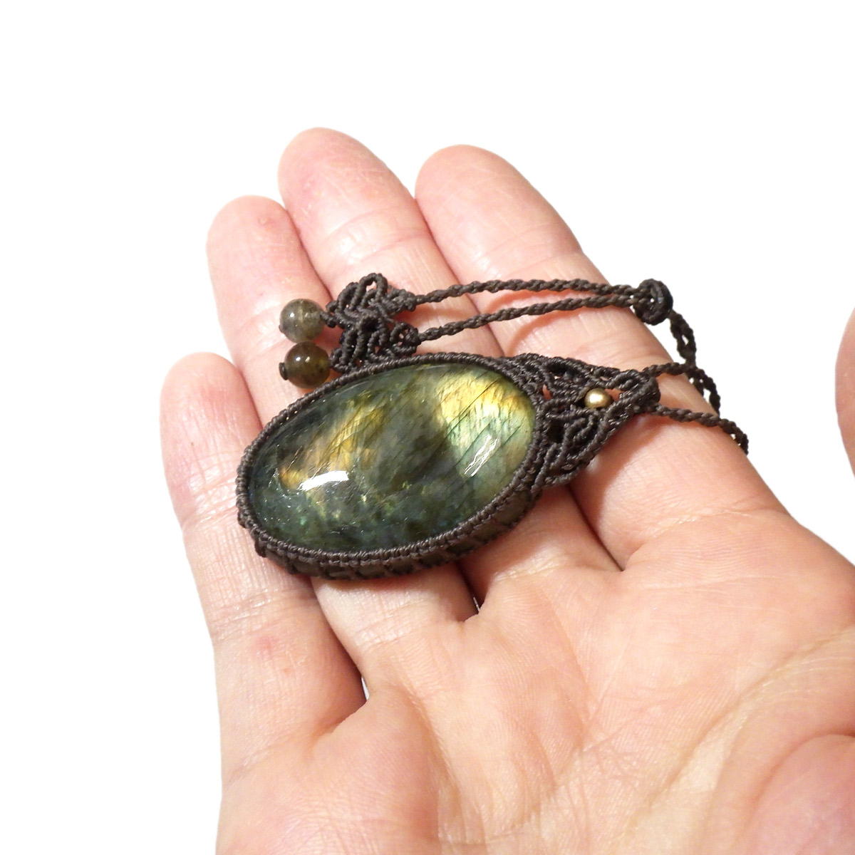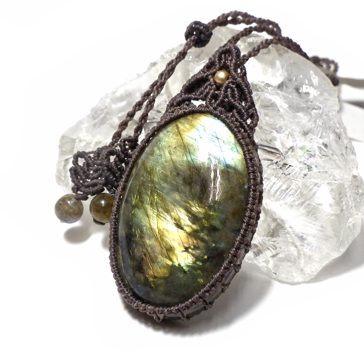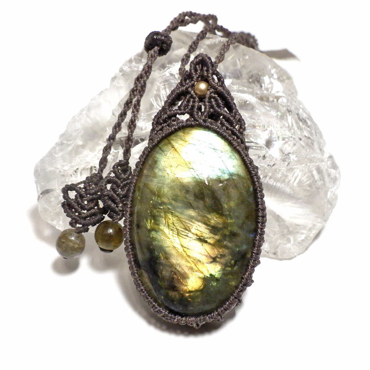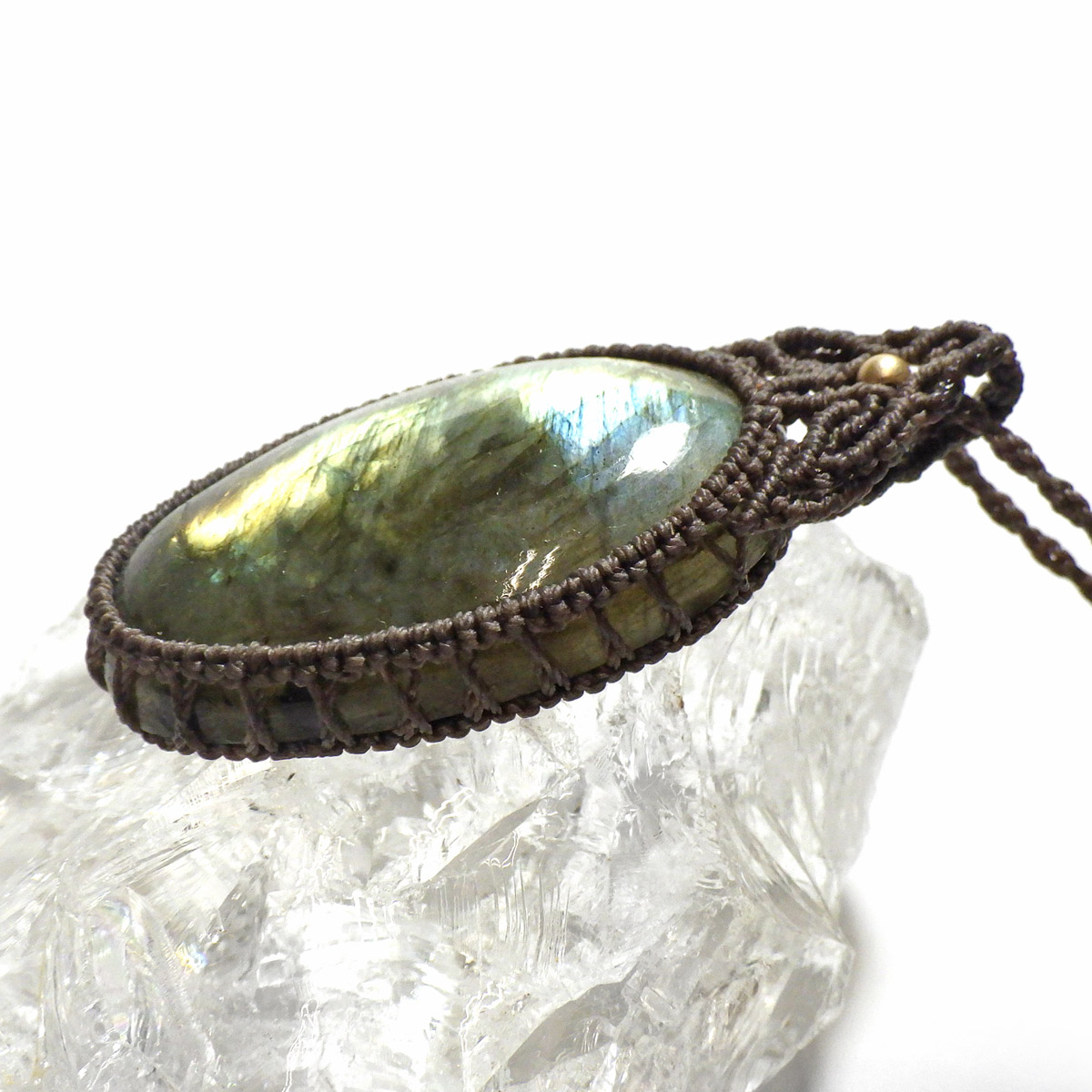 マダガスカル産のラブラドライトを使用したマクラメペンダントです。