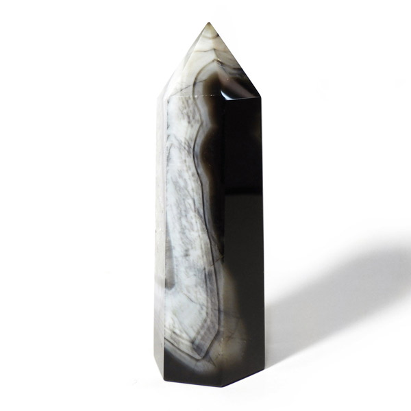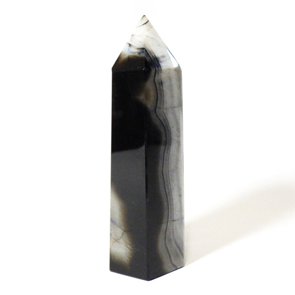 ブラジル産ブラックアゲートのポリッシュポイントです。艶やかに磨かれた表面には、漆黒に浮かぶ模様がスタイリッシュな存在感を放ちます。