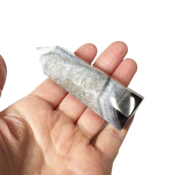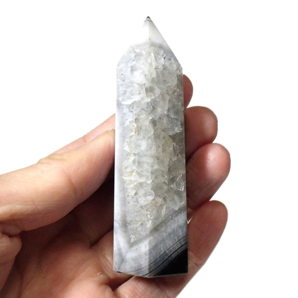 美しい縞模様や、水晶部分の透明感ある輝きも楽しめる一品です。