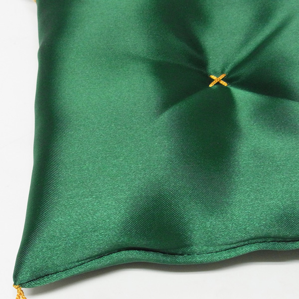 座布団の房は黄糸を使用しています。厚みはおよそ3cm程度です。