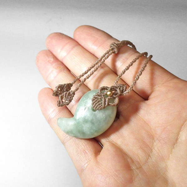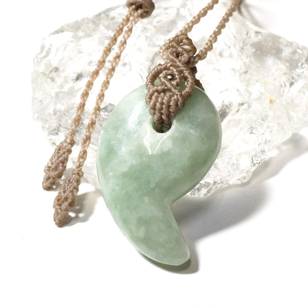 ジェダイト(翡翠) 勾玉 マクラメペンダント ミャンマー産