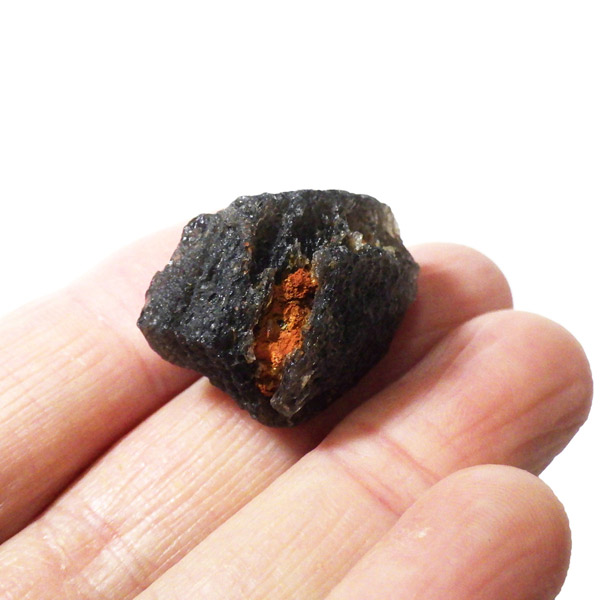 インドネシア・ジャワ島で採掘される希少な天然ガラスであるアグニマニタイトの原石です。アグニマニタイトの石の名前は、サンスクリット語で「火の神」を意味するアグニと「宝石」を意味するマニに由来し、「火の宝石」として知られています。表面はマットな黒~グレーの質感で、ごつごつとした天然のテクスチャが魅力的。光に透かすと、ほんのりスモーキーで神秘的な雰囲気を放ちます。フォルムや質感が面白い原石です。鉱物コレクションやお守り、アクセサリー制作にもおすすめです。