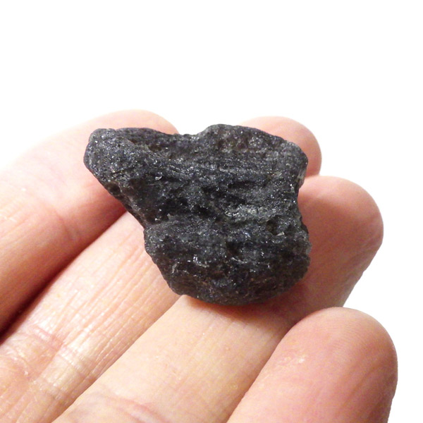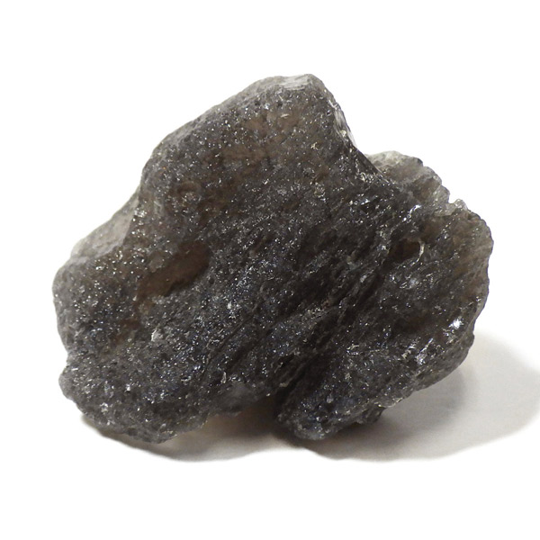 インドネシア・ジャワ島で採掘される希少な天然ガラスであるアグニマニタイトの原石です。アグニマニタイトの石の名前は、サンスクリット語で「火の神」を意味するアグニと「宝石」を意味するマニに由来し、「火の宝石」として知られています。表面はマットな黒~グレーの質感で、ごつごつとした天然のテクスチャが魅力的。光に透かすと、ほんのりスモーキーで神秘的な雰囲気を放ちます。フォルムや質感が面白い原石です。鉱物コレクションやお守り、アクセサリー制作にもおすすめです。