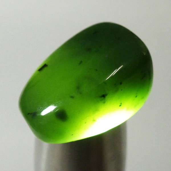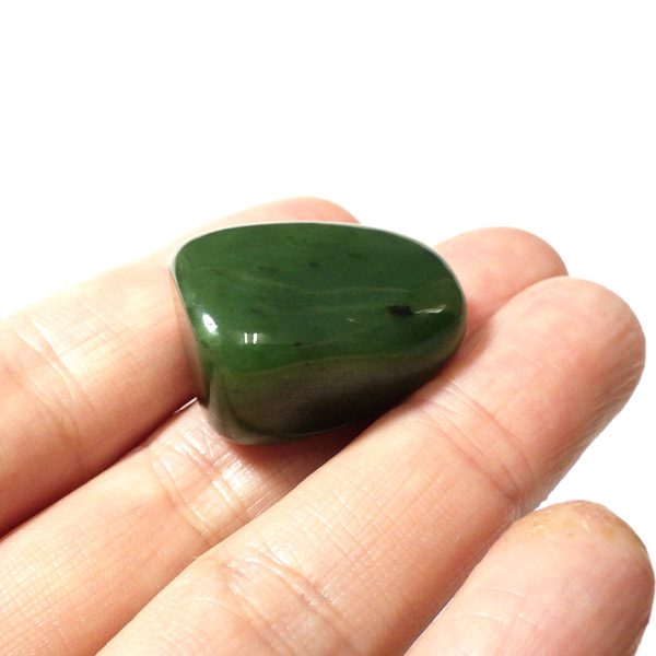 カナダ産のカナディアンジェイド、タンブルです。 カナダで産出するジェイド(翡翠)でとても深いグリーンが美しいです。ジェイド又はジェードと表記されます。翡翠には二種類あり、カナディアンジェイドはネフライトになります。翡翠は1863年までは単一の種類の宝石と考えられてきましたが、ジェダイトとネフライトの2種類に分類された歴史があります。