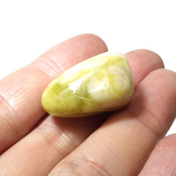 スコットランド産、アイオナマーブルのタンブルです。アイオナマーブルは、スコットランドのアイオナ島で産出する大理石です。蛇紋岩と石灰岩の独特な組み合わせで構成されています。現在は採石されておらず、大規模な流通はしておりません。アイオナ島の漁師たちは、聖なる石として石を持たずに港を出ることはなかったといわれています。イエローグリーンとホワイトの組み合わせが可愛らしく、柔らかな色味でとても癒されます。