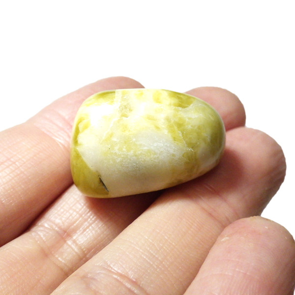 スコットランド産、アイオナマーブルのタンブルです。アイオナマーブルは、スコットランドのアイオナ島で産出する大理石です。蛇紋岩と石灰岩の独特な組み合わせで構成されています。現在は採石されておらず、大規模な流通はしておりません。アイオナ島の漁師たちは、聖なる石として石を持たずに港を出ることはなかったといわれています。イエローグリーンとホワイトの組み合わせが可愛らしく、柔らかな色味でとても癒されます。