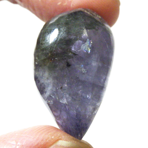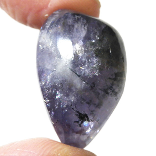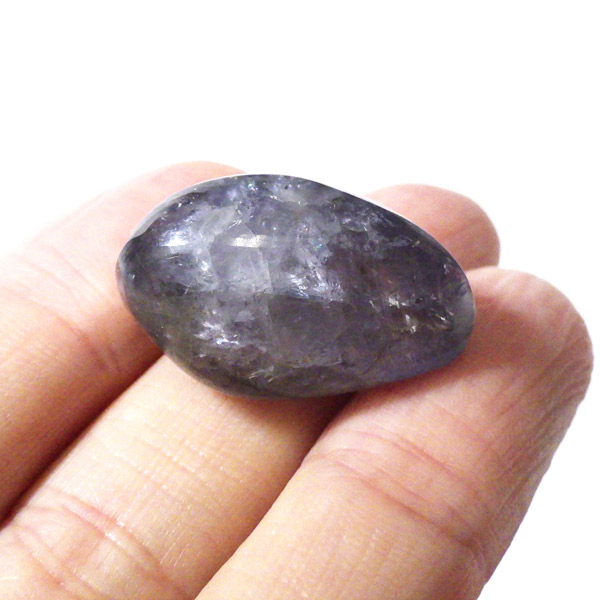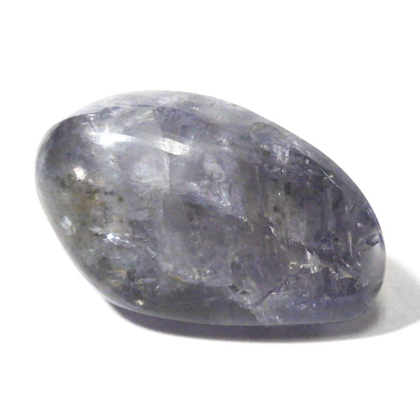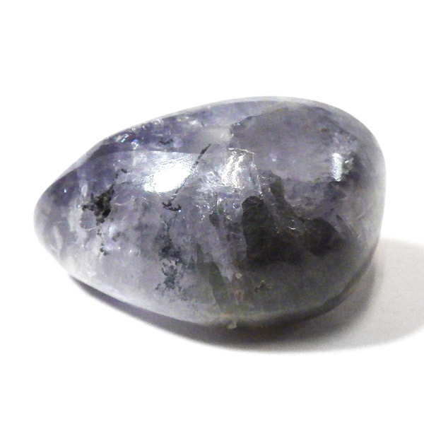 インド産のアイオライト、タンブルです。アイオライトは見る角度によって色が変化するという神秘的な鉱石です。広域変成岩や接触変成岩などで発見されるケイ酸塩鉱物の一種で、多色性が強く、見る角度によって群青色から淡い枯れ草色に変化します。アイオライトの中でも、透明感があり、発色の良い大変グレードの高い希少なものをご用意しました。