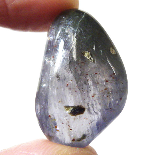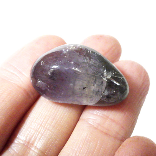 インド産のAAAアイオライト、タンブルです。アイオライトは見る角度によって色が変化するという神秘的な鉱石です。広域変成岩や接触変成岩などで発見されるケイ酸塩鉱物の一種で、多色性が強く、見る角度によって群青色から淡い枯れ草色に変化します。アイオライトの中でも、透明感があり、発色の良い大変グレードの高い希少なものをご用意しました。