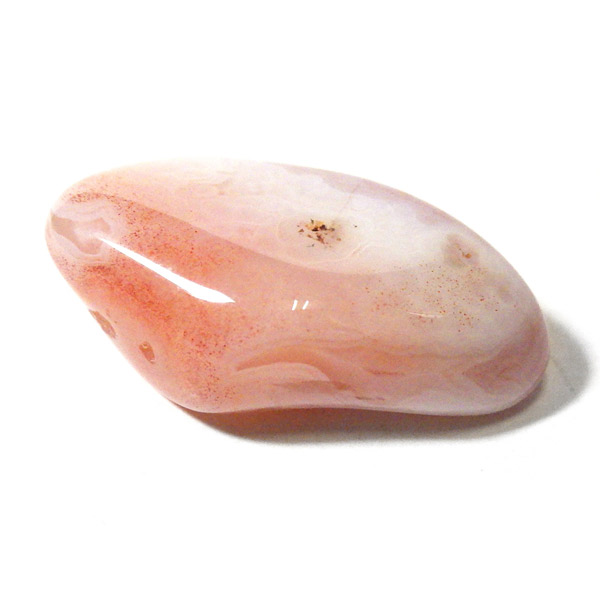ボツワナ産のアプリコットアゲート、タンブルです。アプリコットアゲートは、優しいアプリコットカラーが特徴の瑪瑙(アゲート)の種類です。アプリコット、いわゆる杏カラーのアゲートです。天然石のカラーニックネームによく果物などが使われることが多くあります。温かみのあるオレンジやピンクのトーンと縞模様が、穏やかで安心感のあるエネルギーをもたらし、心を和ませてくれます。