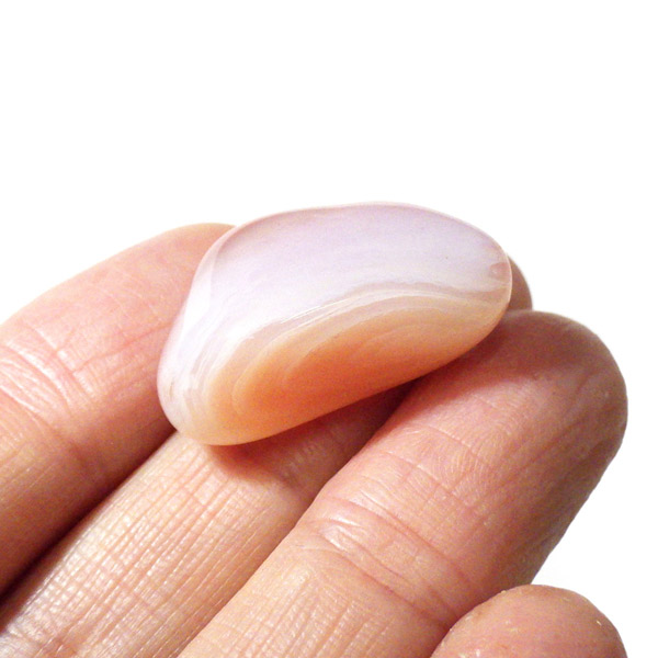 ボツワナ産のアプリコットアゲート、タンブルです。アプリコットアゲートは、優しいアプリコットカラーが特徴の瑪瑙(アゲート)の種類です。アプリコット、いわゆる杏カラーのアゲートです。天然石のカラーニックネームによく果物などが使われることが多くあります。温かみのあるオレンジやピンクのトーンと縞模様が、穏やかで安心感のあるエネルギーをもたらし、心を和ませてくれます。