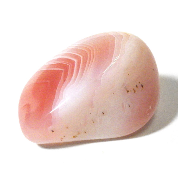 ボツワナ産のアプリコットアゲート、タンブルです。アプリコットアゲートは、優しいアプリコットカラーが特徴の瑪瑙(アゲート)の種類です。アプリコット、いわゆる杏カラーのアゲートです。天然石のカラーニックネームによく果物などが使われることが多くあります。温かみのあるオレンジやピンクのトーンと縞模様が、穏やかで安心感のあるエネルギーをもたらし、心を和ませてくれます。