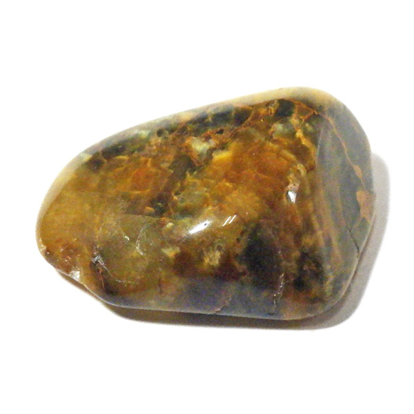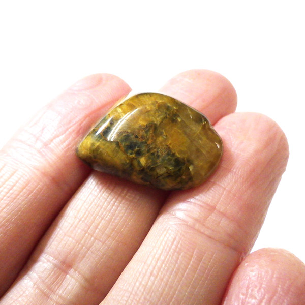 ナミビア産のネライト、タンブルです。ネライトはタイガーアイとピーターサイトの中間的な性質を持つ石に付けられた流通名です。タイガーアイの成分を持つ鉱物が、地殻変動によって粉砕され、膨大な年月を掛けて石英により自然に接合されて出来た鉱物です。そのため、タイガーアイのように繊維が直線状に形成されず、ピーターサイトに近い渦を巻くような流動的模様になります。鉱物学的正式名称はクロシドライトアゲートとなるかと思います。
