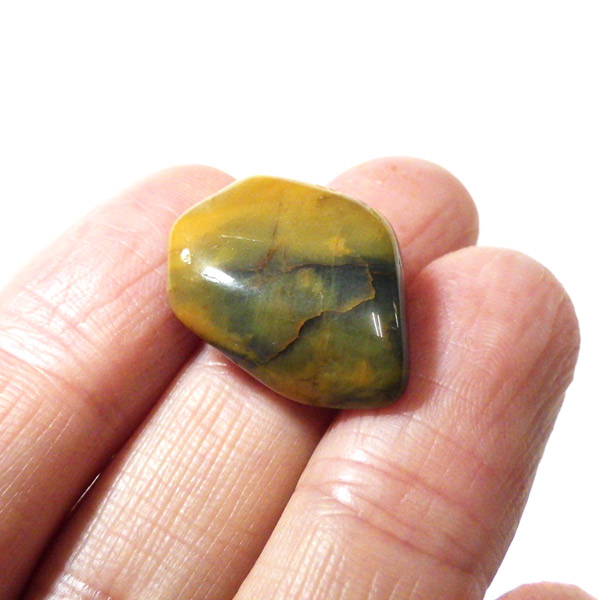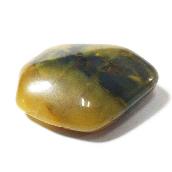 ナミビア産のネライト、タンブルです。ネライトはタイガーアイとピーターサイトの中間的な性質を持つ石に付けられた流通名です。タイガーアイの成分を持つ鉱物が、地殻変動によって粉砕され、膨大な年月を掛けて石英により自然に接合されて出来た鉱物です。そのため、タイガーアイのように繊維が直線状に形成されず、ピーターサイトに近い渦を巻くような流動的模様になります。鉱物学的正式名称はクロシドライトアゲートとなるかと思います。