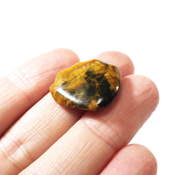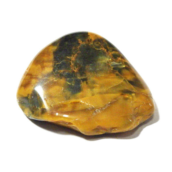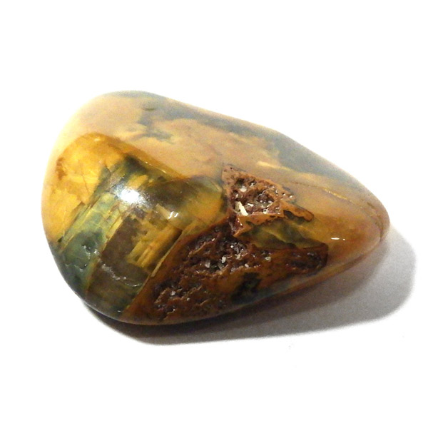 ナミビア産のネライト、タンブルです。ネライトはタイガーアイとピーターサイトの中間的な性質を持つ石に付けられた流通名です。タイガーアイの成分を持つ鉱物が、地殻変動によって粉砕され、膨大な年月を掛けて石英により自然に接合されて出来た鉱物です。そのため、タイガーアイのように繊維が直線状に形成されず、ピーターサイトに近い渦を巻くような流動的模様になります。鉱物学的正式名称はクロシドライトアゲートとなるかと思います。