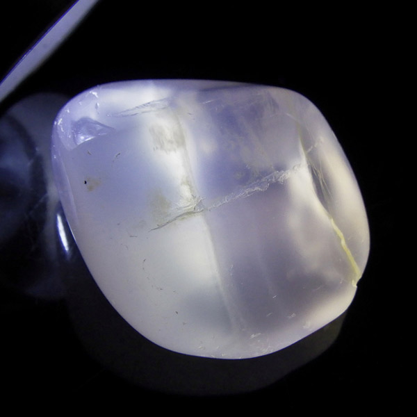 カルセドニーはカーネリアンやクリソプレーズ、アゲートなどと同じ珪酸塩鉱物で、石英の微細結晶が集まってできています。透明に結晶化したものが水晶ですが、こちらはカルセドニー特有の半透明感が魅力的。