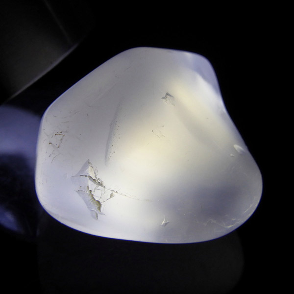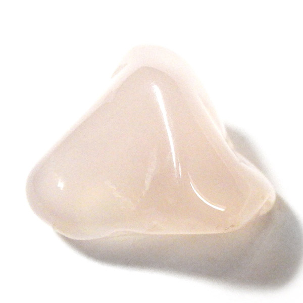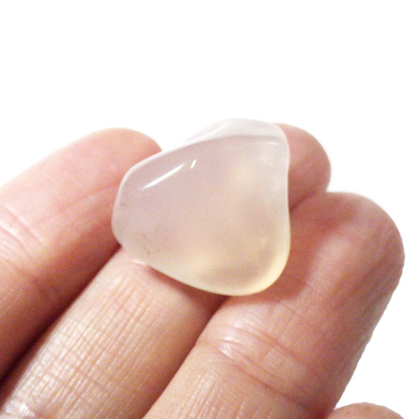 ナミビア産のピンクカルセドニー、タンブルです。 カルセドニーはカーネリアンやクリソプレーズ、アゲートなどと同じ珪酸塩鉱物で、石英の微細結晶が集まってできています。透明に結晶化したものが水晶ですが、こちらはカルセドニー特有の半透明感が魅力的。 優しいピンク色に色づいた石は、光に透かすとローズクォーツとはまた異なる雰囲気を見せ、ぬめっとした柔らかな質感が感じられます。可愛らしくも上品な印象を持つ、美しい天然石です。