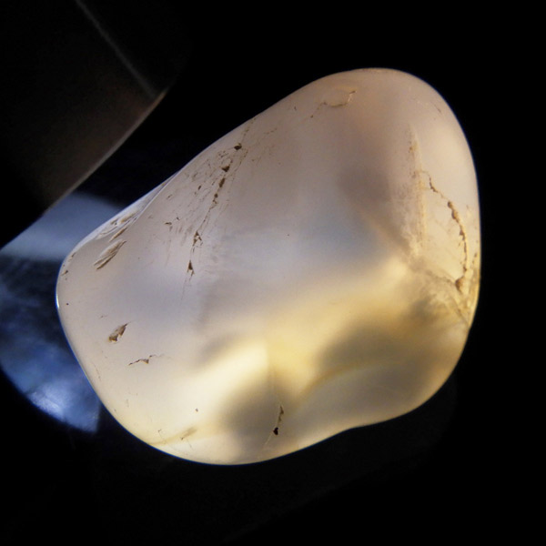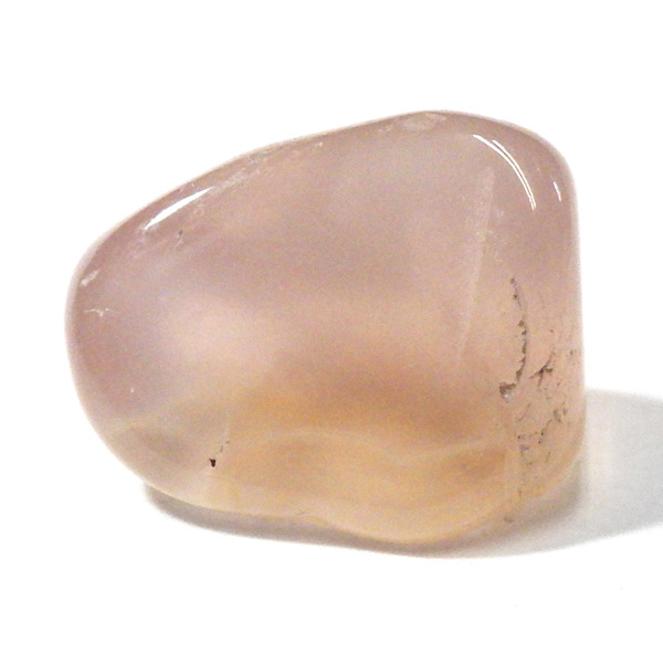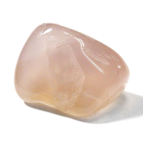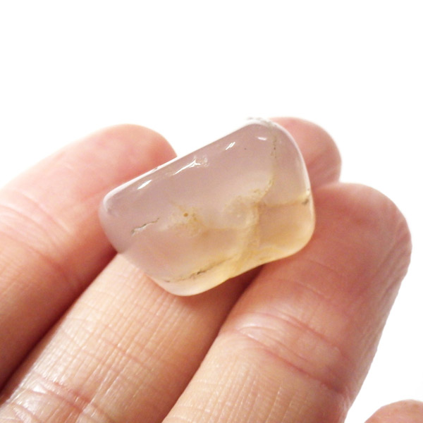ナミビア産のピンクカルセドニー、タンブルです。 カルセドニーはカーネリアンやクリソプレーズ、アゲートなどと同じ珪酸塩鉱物で、石英の微細結晶が集まってできています。透明に結晶化したものが水晶ですが、こちらはカルセドニー特有の半透明感が魅力的。 優しいピンク色に色づいた石は、光に透かすとローズクォーツとはまた異なる雰囲気を見せ、ぬめっとした柔らかな質感が感じられます。可愛らしくも上品な印象を持つ、美しい天然石です。
