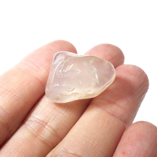 優しいピンク色に色づいた石は、光に透かすとローズクォーツとはまた異なる雰囲気を見せ、ぬめっとした柔らかな質感が感じられます。可愛らしくも上品な印象を持つ、美しい天然石です。