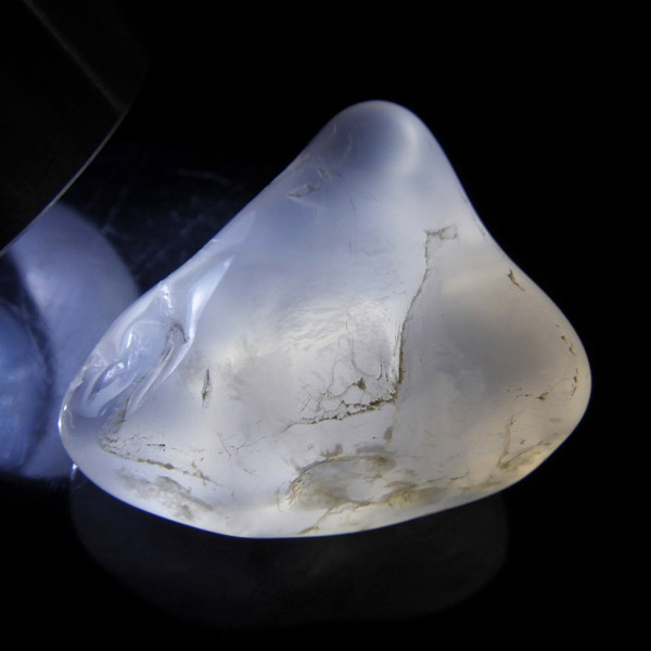 カルセドニーはカーネリアンやクリソプレーズ、アゲートなどと同じ珪酸塩鉱物で、石英の微細結晶が集まってできています。透明に結晶化したものが水晶ですが、こちらはカルセドニー特有の半透明感が魅力的。