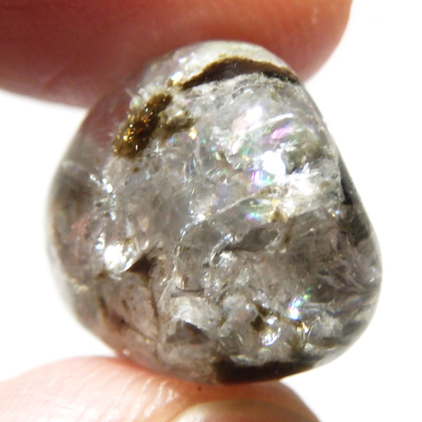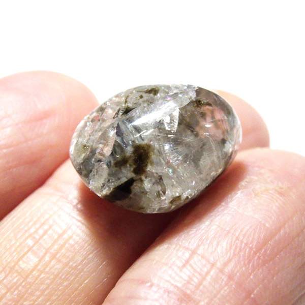 ロシア産のフェナカイト、タンブルです。フェナカイトは、1883年にロシア・ウラル地方のエメラルド鉱山で発見された、非常に希少なベリリウム珪酸塩鉱物です。産出量が極めて少なく、透明度の高い結晶は特に貴重とされています。