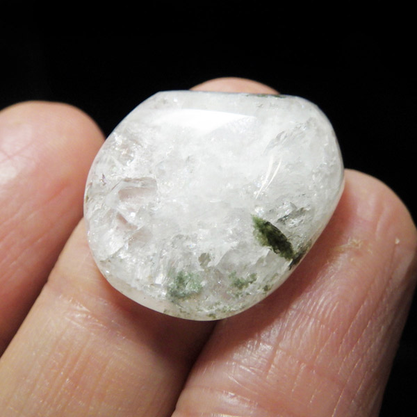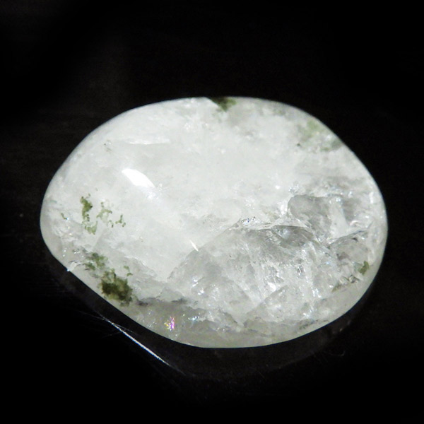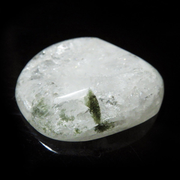 ロシア産のフェナカイト、タンブルです。フェナカイトは、1883年にロシア・ウラル地方のエメラルド鉱山で発見された、非常に希少なベリリウム珪酸塩鉱物です。産出量が極めて少なく、透明度の高い結晶は特に貴重とされています。