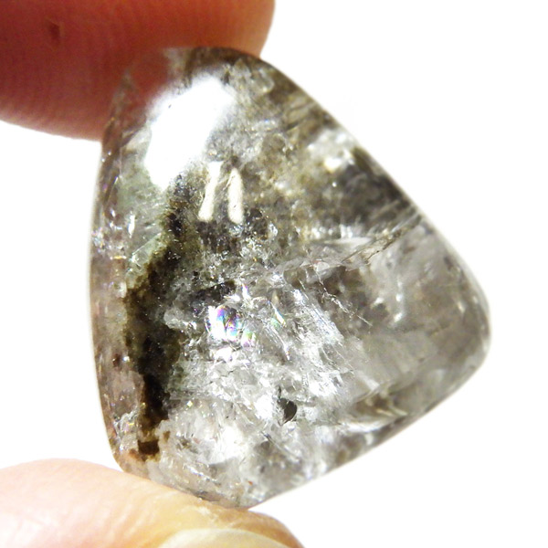ロシア産のフェナカイト、タンブルです。フェナカイトは、1883年にロシア・ウラル地方のエメラルド鉱山で発見された、非常に希少なベリリウム珪酸塩鉱物です。産出量が極めて少なく、透明度の高い結晶は特に貴重とされています。