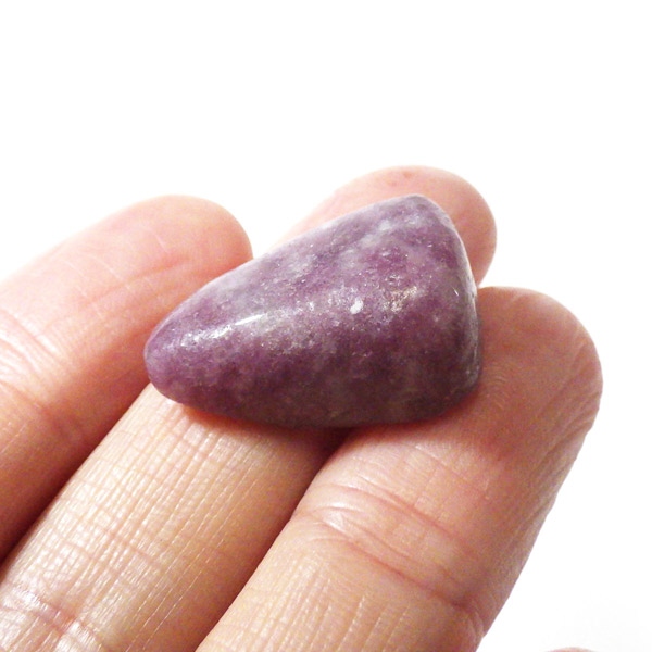 モザンビーク産のレピドライト、タンブルです。濃淡のある赤紫色のモザンビーク産のレピドライトです。雲母の一種で、リチウムを多く含んでいるため、和名を「リチア雲母」と言います。