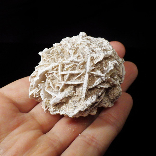 メキシコ産、デザートローズの原石です。手のひらに収まる大きさで形がかわいい結晶を厳選して集めました。デザートローズはジプサムを主成分とした砂漠で見つかる薔薇の花の形の結晶のことです。全体のフォルムとして見た目が丸っこく、細かいところまで織り成す結晶の美しさと神秘さが素敵です。