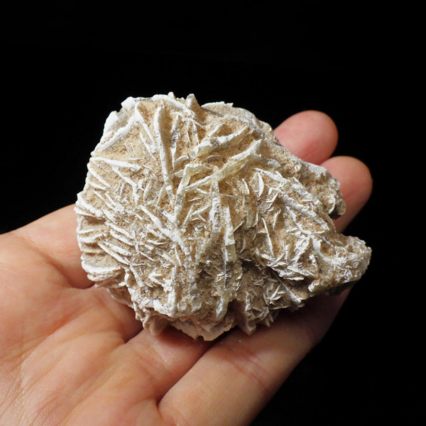 メキシコ産、デザートローズの原石です。手のひらに収まる大きさで形がかわいい結晶を厳選して集めました。デザートローズはジプサムを主成分とした砂漠で見つかる薔薇の花の形の結晶のことです。全体のフォルムとして見た目が丸っこく、細かいところまで織り成す結晶の美しさと神秘さが素敵です。