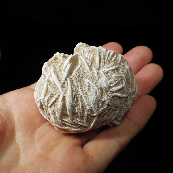 メキシコ産、デザートローズの原石です。手のひらに収まる大きさで形がかわいい結晶を厳選して集めました。デザートローズはジプサムを主成分とした砂漠で見つかる薔薇の花の形の結晶のことです。全体のフォルムとして見た目が丸っこく、細かいところまで織り成す結晶の美しさと神秘さが素敵です。