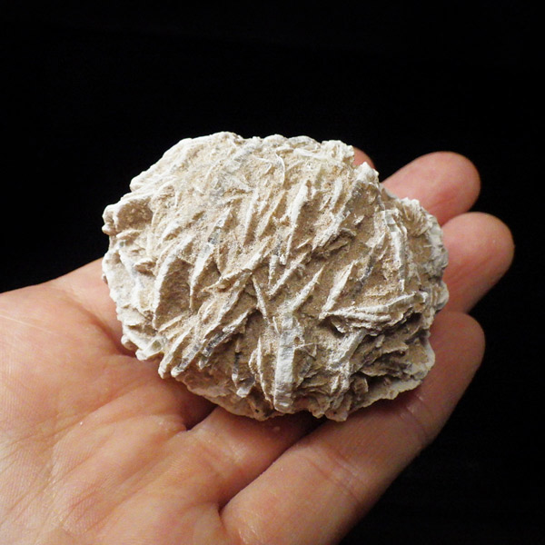 メキシコ産、デザートローズの原石です。手のひらに収まる大きさで形がかわいい結晶を厳選して集めました。デザートローズはジプサムを主成分とした砂漠で見つかる薔薇の花の形の結晶のことです。全体のフォルムとして見た目が丸っこく、細かいところまで織り成す結晶の美しさと神秘さが素敵です。