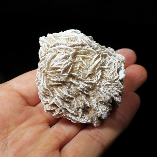 メキシコ産、デザートローズの原石です。手のひらに収まる大きさで形がかわいい結晶を厳選して集めました。デザートローズはジプサムを主成分とした砂漠で見つかる薔薇の花の形の結晶のことです。全体のフォルムとして見た目が丸っこく、細かいところまで織り成す結晶の美しさと神秘さが素敵です。