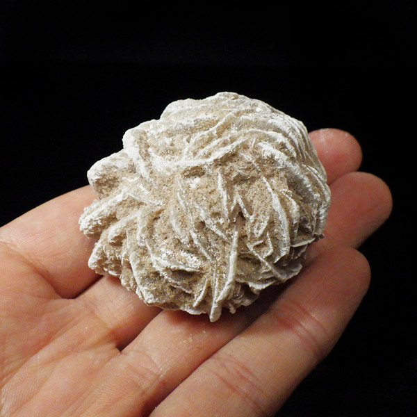 メキシコ産、デザートローズの原石です。手のひらに収まる大きさで形がかわいい結晶を厳選して集めました。デザートローズはジプサムを主成分とした砂漠で見つかる薔薇の花の形の結晶のことです。全体のフォルムとして見た目が丸っこく、細かいところまで織り成す結晶の美しさと神秘さが素敵です。