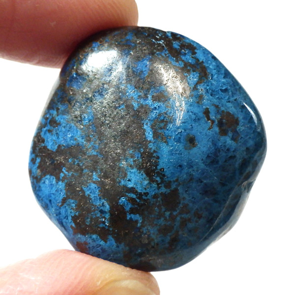 深みのあるブルーから鮮やかなブルーグリーンまでの色彩を持ちます。主に銅鉱床の酸化帯に産出し、クリソコラ、マラカイト、アズライト、キュープライトなどと共生することが多い鉱物です。