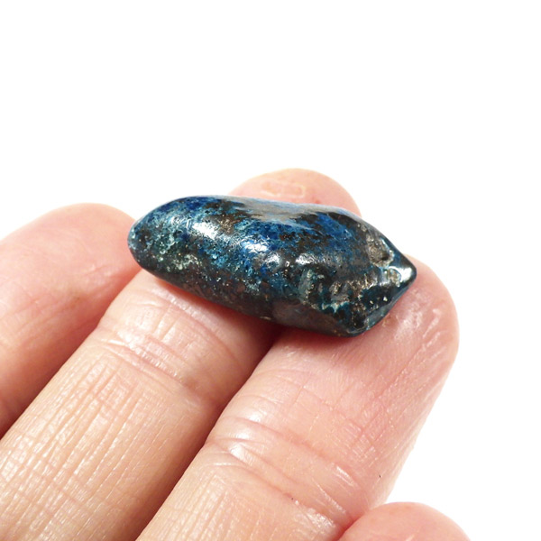 深みのあるブルーから鮮やかなブルーグリーンまでの色彩を持ちます。主に銅鉱床の酸化帯に産出し、クリソコラ、マラカイト、アズライト、キュープライトなどと共生することが多い鉱物です。