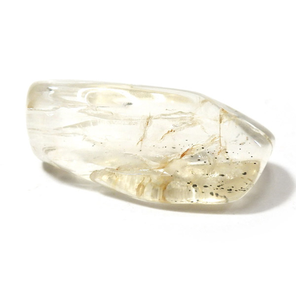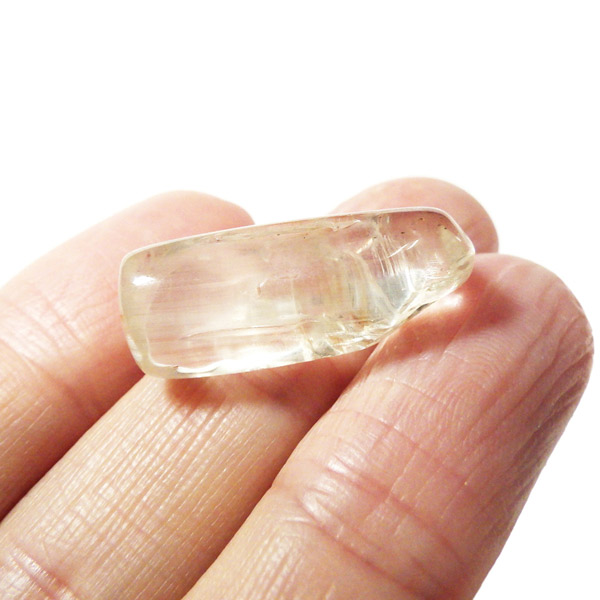 透明度が高く、シャンパンゴールドの上品な輝きを放つインド産スキャポライトのタンブルです。