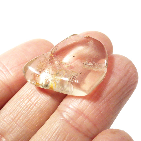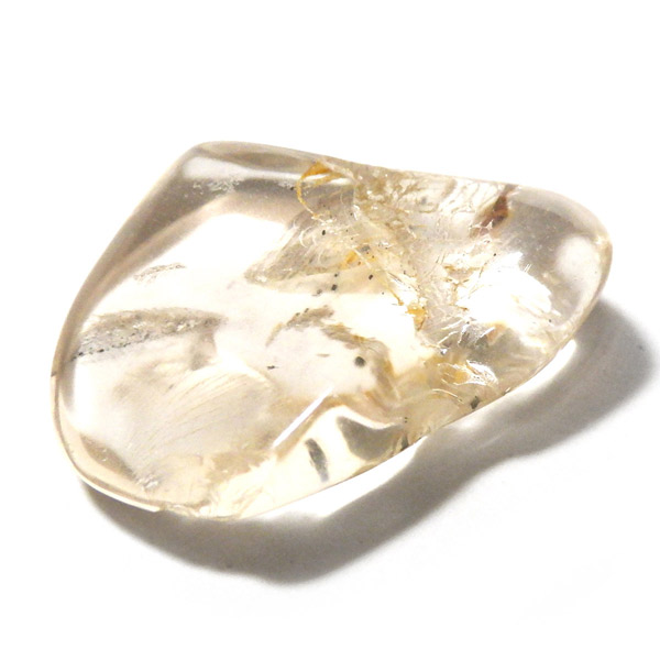 透明度が高く、シャンパンゴールドの上品な輝きを放つインド産スキャポライトのタンブルです。