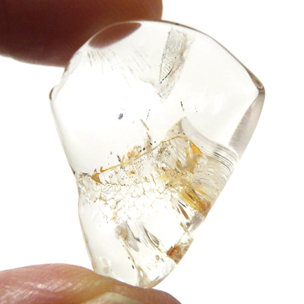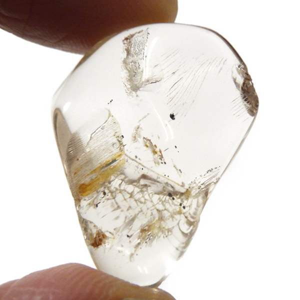 色合いは無色・白・黄色・ピンク・紫・青・褐色・灰色など多彩で、こちらの個体は内部に繊細な結晶の筋が見られます。