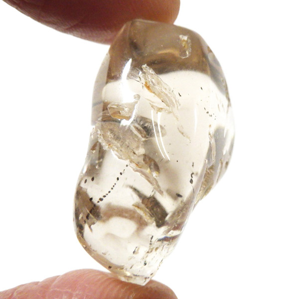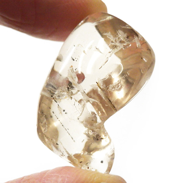 透明度が高く、シャンパンゴールドの上品な輝きを放つインド産スキャポライトのタンブルです。