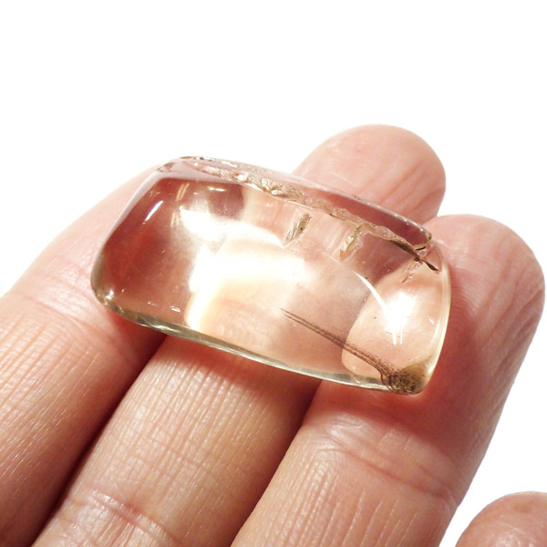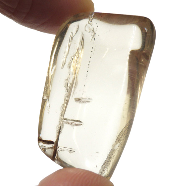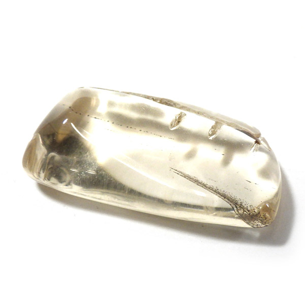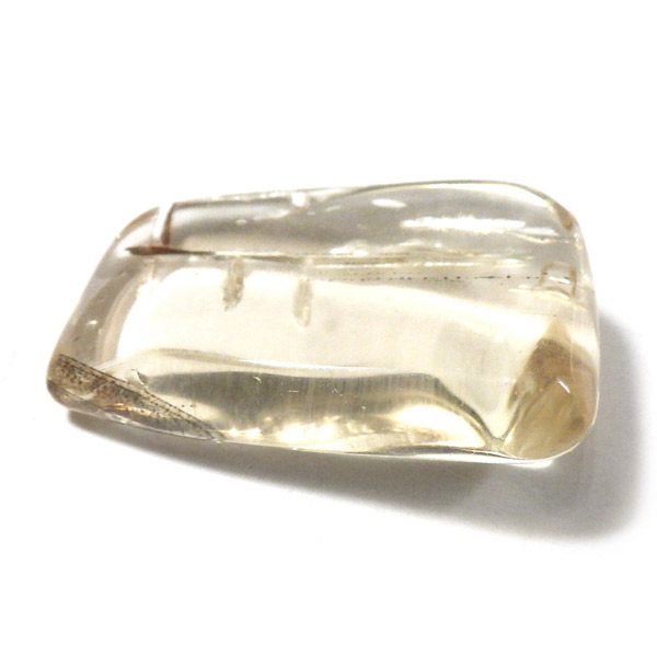 透明度が高く、シャンパンゴールドの上品な輝きを放つインド産スキャポライトのタンブルです。