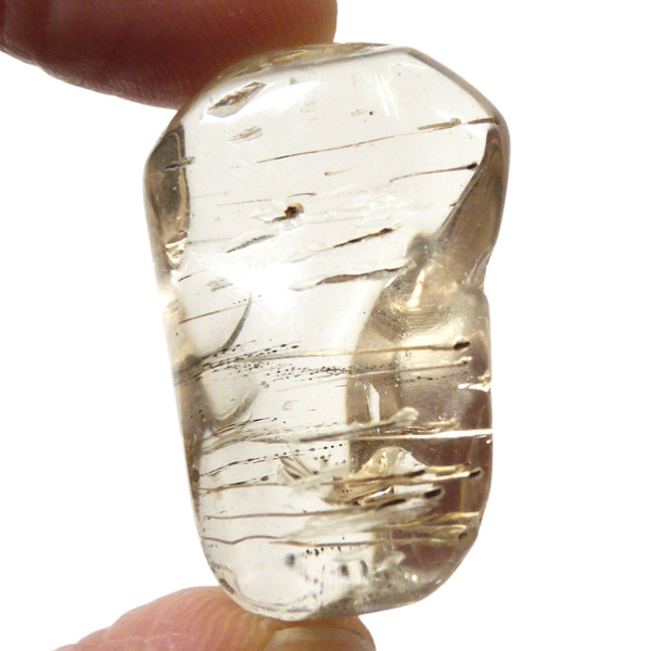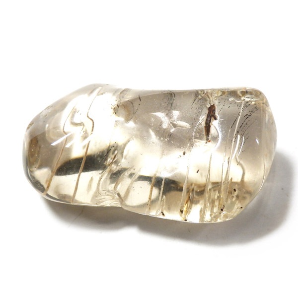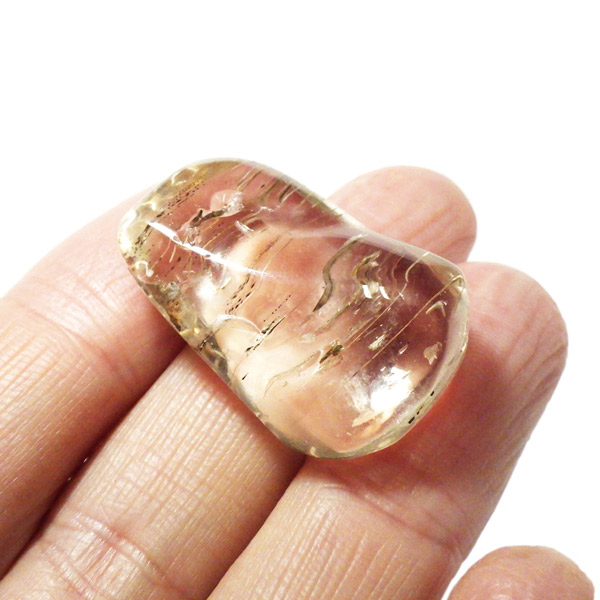透明度が高く、シャンパンゴールドの上品な輝きを放つインド産スキャポライトのタンブルです。