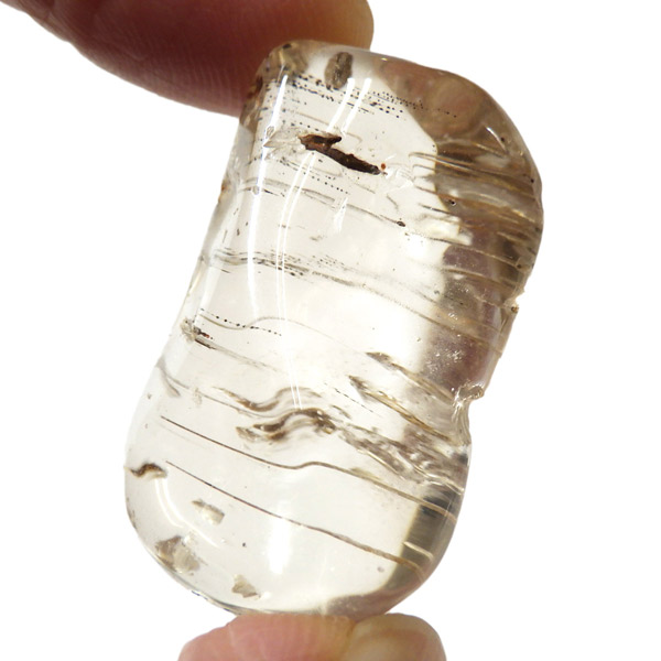 色合いは無色・白・黄色・ピンク・紫・青・褐色・灰色など多彩で、こちらの個体は内部に繊細な結晶の筋が見られます。