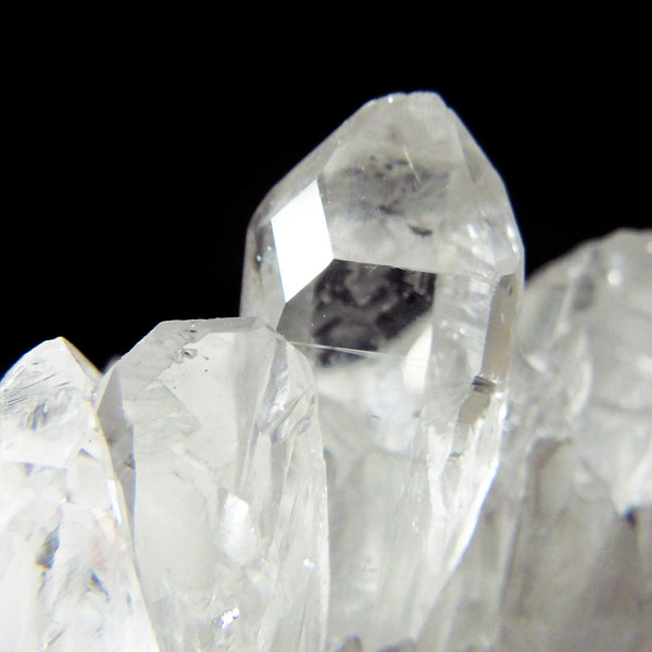 ブラジル トマスゴンサガ産 の水晶クラスターです。トマスゴンサガ産の水晶の特徴は、照りと艶。 光沢が強いため、驚くほどキラキラとしています。 また、水晶柱が放射線状に伸びて立体的な構造を作っているものが多く、「これぞ、水晶クラスター」という形状をしています。 非常に透明度の高い大小様々な結晶が複雑に絡み合い、見る角度によって様々な表情を見せる大変美しいクラスターです。
