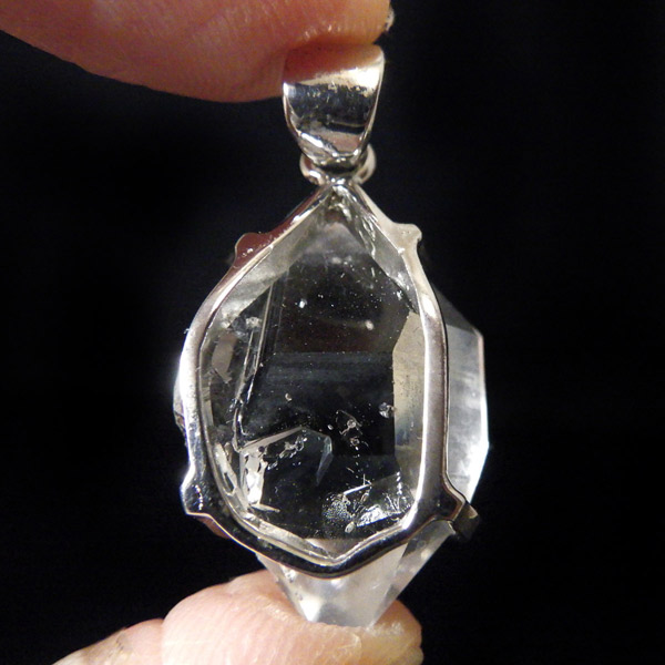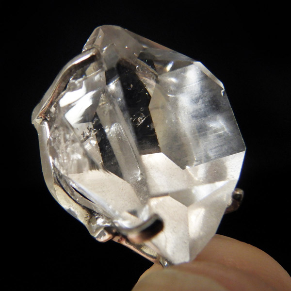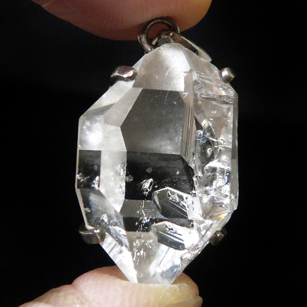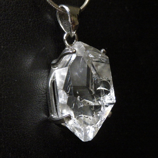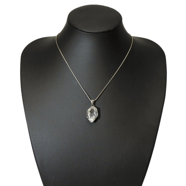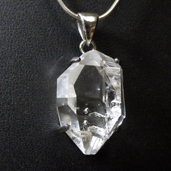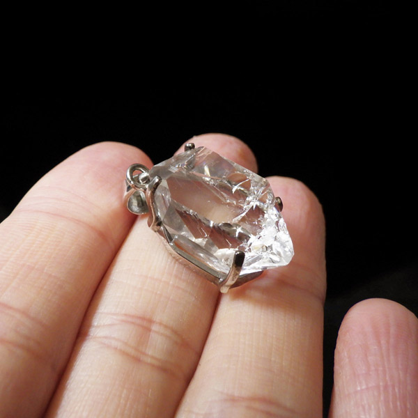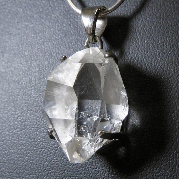 アメリカ・ニューヨーク州・ハーキマー産の大変透明度の高く、大粒のハーキマーダイヤモンドのペンダントトップです。ハーキマーダイヤモンドは研磨することなくこのコロンとしたかわいい形状をしています。ハーキマーダイヤモンドと特別視されるほど質の良い水晶です。研磨などは一切しておらず原石をそのままの形でペンダントトップに加工をしています。それでいてこの結晶体はまさに神秘。その形状から希望の種、才能の種、ドリームクリスタルと呼ばれたりもします。爪でしっかりと固定しておりますで外れることはありません。存在感のある大粒のハーキマーダイヤモンドのペンダントトップを是非この機会にお買い求めください。