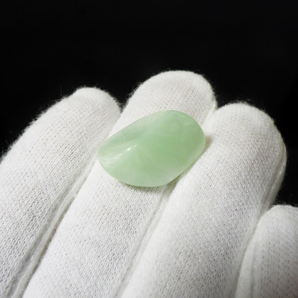 ナミビア産のアップルグリーンプレナイト、タンブルです。プレナイトは、淡い青緑から黄色にかけての色合いの石。1788年に南アフリカで初めてこの石を発見したフォン・プレーン大佐にちなんで名付けられました。葡萄石という和名は産出時に見た目が葡萄のようであったことから名づけられました。今回は黄色味がかったものではなく、発色の良いアップルグリーンのプレナイトをご用意いたしました。綺麗な色合いで心が落ち着きます。