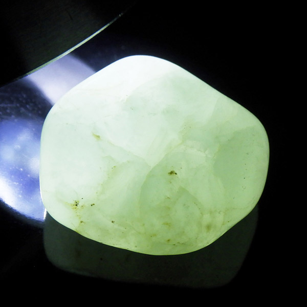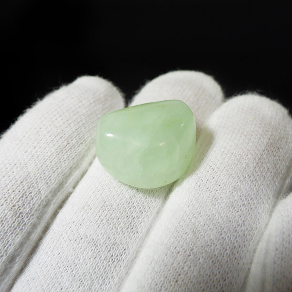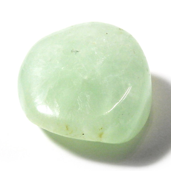 ナミビア産のアップルグリーンプレナイト、タンブルです。プレナイトは、淡い青緑から黄色にかけての色合いの石。1788年に南アフリカで初めてこの石を発見したフォン・プレーン大佐にちなんで名付けられました。葡萄石という和名は産出時に見た目が葡萄のようであったことから名づけられました。今回は黄色味がかったものではなく、発色の良いアップルグリーンのプレナイトをご用意いたしました。綺麗な色合いで心が落ち着きます。