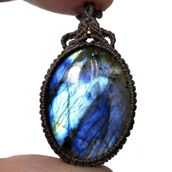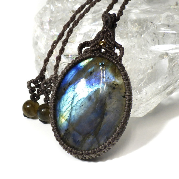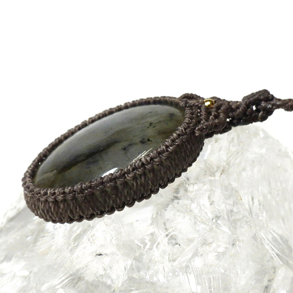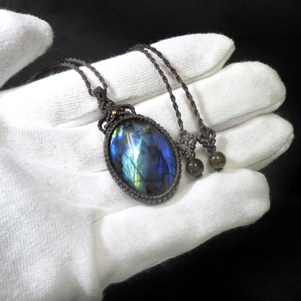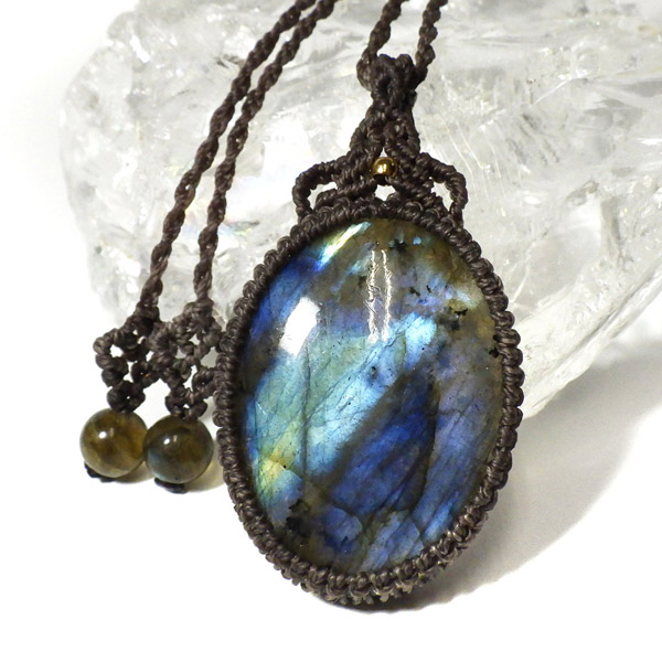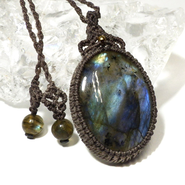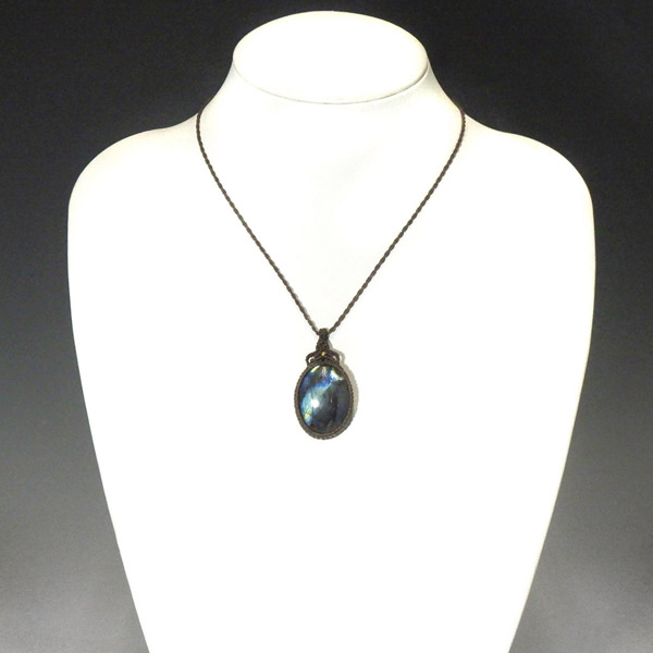 マダガスカル産のラブラドライトを使用したマクラメペンダントです。