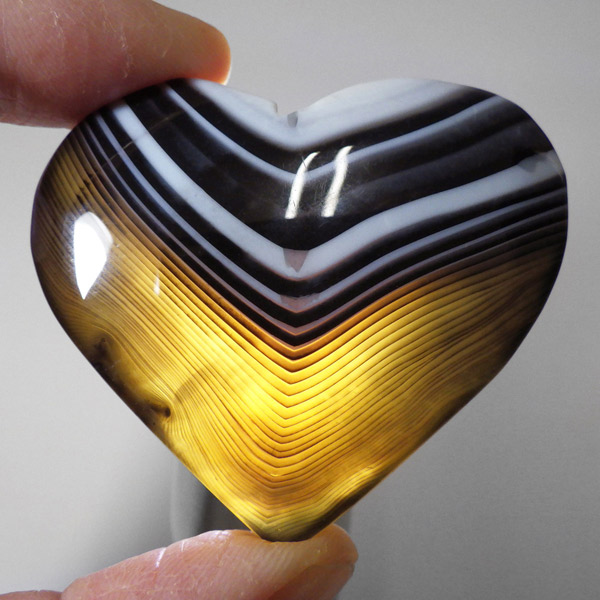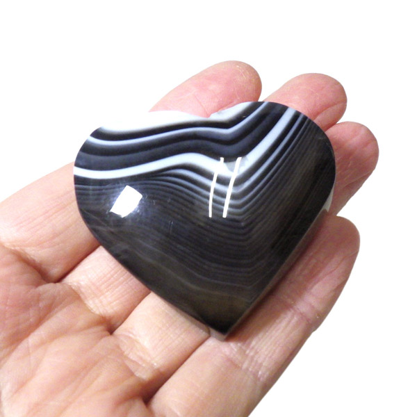 チャイナ産のブラックアゲートを使用した、ハート形の置物です。ブラックアゲート、ブラックバンデッドアゲートなどと呼ばれています。