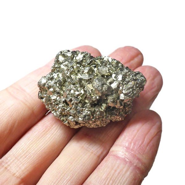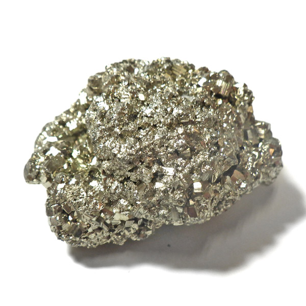 ペルー産のパイライト原石です。コロッとかわいらしいサイズでキラキラが信じられないほどまぶしい原石。パイライトは、火山活動の活発な場所で生成されます。結晶は大変整った六面体や八面体です。金と間違えるほどのゴールドで、硫黄と鉄で構成された鉱物の一種です。